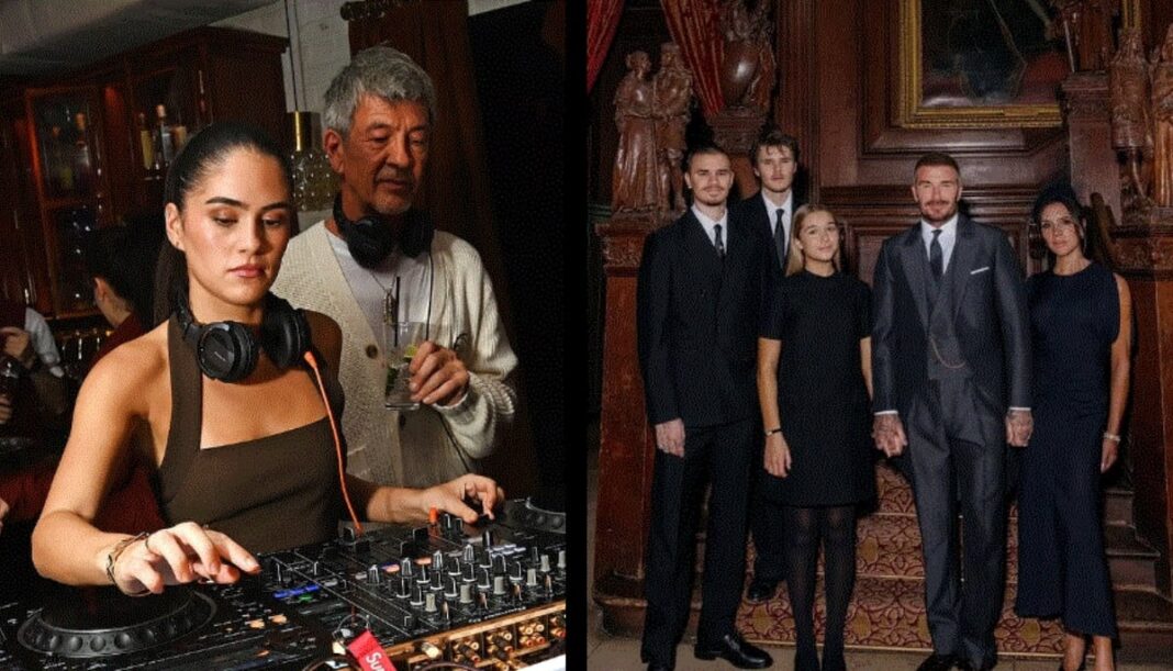Romeo Beckham’s girlfriend Kim Turnbull shares DJ spotlight with father as Beckhams celebrate knighthood.