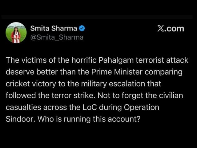 The statement drew criticism for linking cricket to politics, coming after India declined to accept the trophy from Mohsin Naqvi. “The victims of the horrific Palagham Attack deserve better than the Prime Minister comparing cricket victory to military escalation that followed the terror strike,” said one X user. “Not to forget, the civilian casualties across the LOC during Operation Sindoor. Who is running this account?”